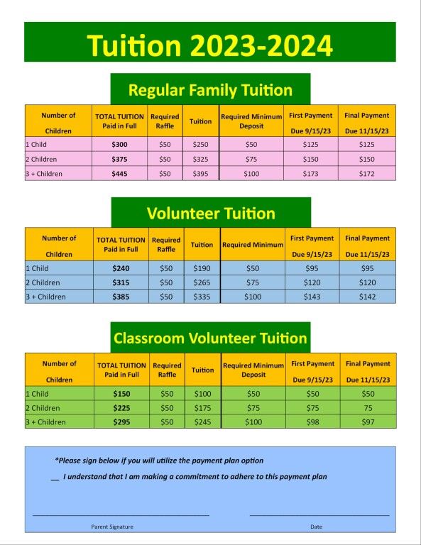 Welcome to a new year! Thank you for registering! Father John, the Fundraising Committee and I absolutely do not want to raise tuition, so we will continue to fundraise to run the RE program.