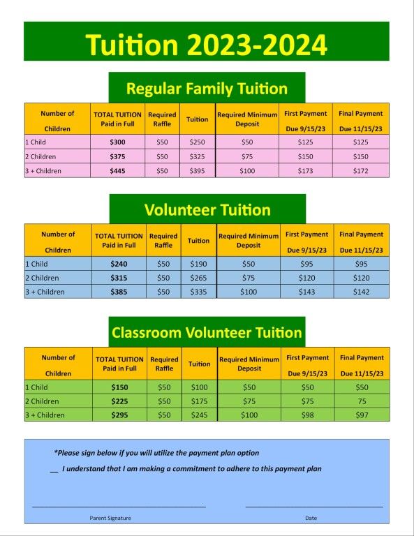 If you are taking advantage of our payment plan, Tuition 2023-2024