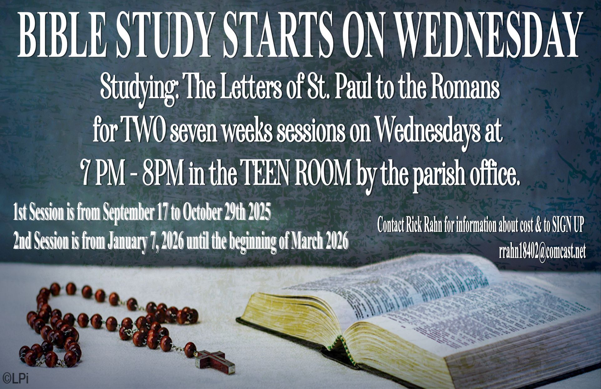 Bible Study meets twice a year, once in the Spring and Fall. Times vary and will be announced. For more information contact Rick Rahn atrrahn18402@comcast.net