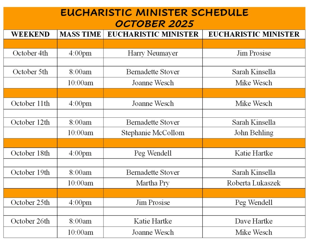 PLEASE REMEMBER THAT YOU ARE RESPONSIBLE FOR FINDING A REPLACEMENT IF YOU ARE UNABLE TO SERVE WHEN SCHEDULED.