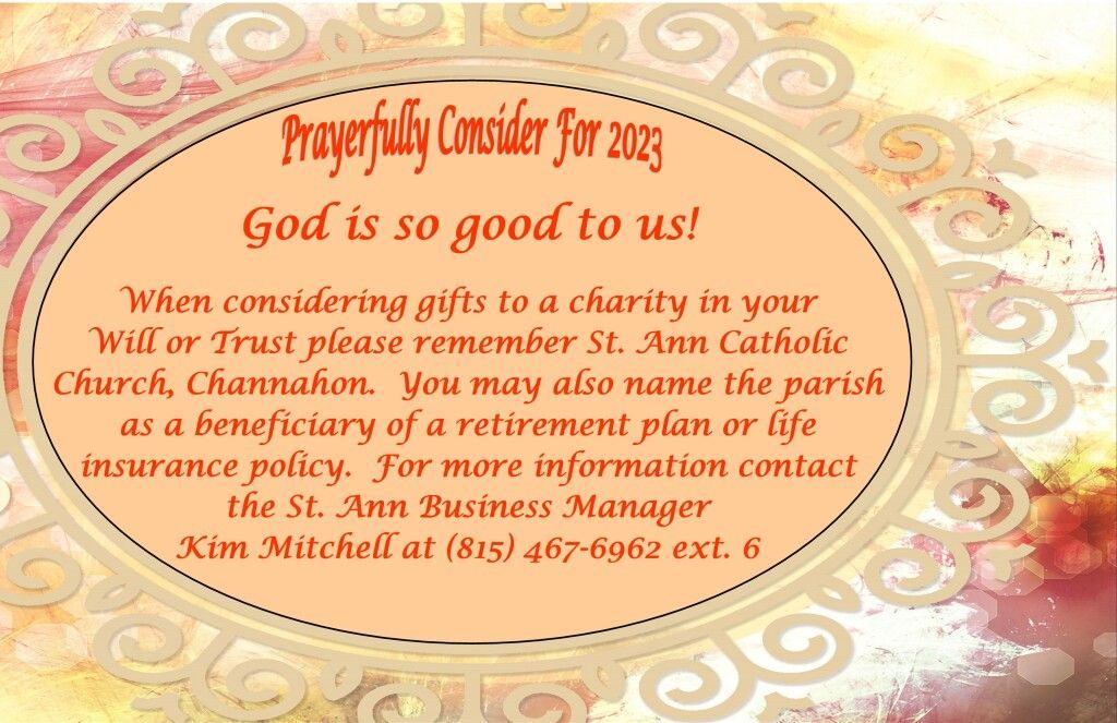 (815) 467-6962 ext. 0 or email at parishoffice@stannchannahon.org