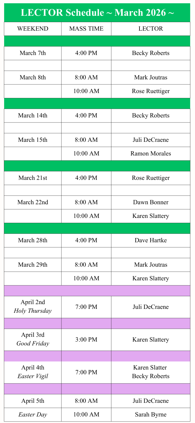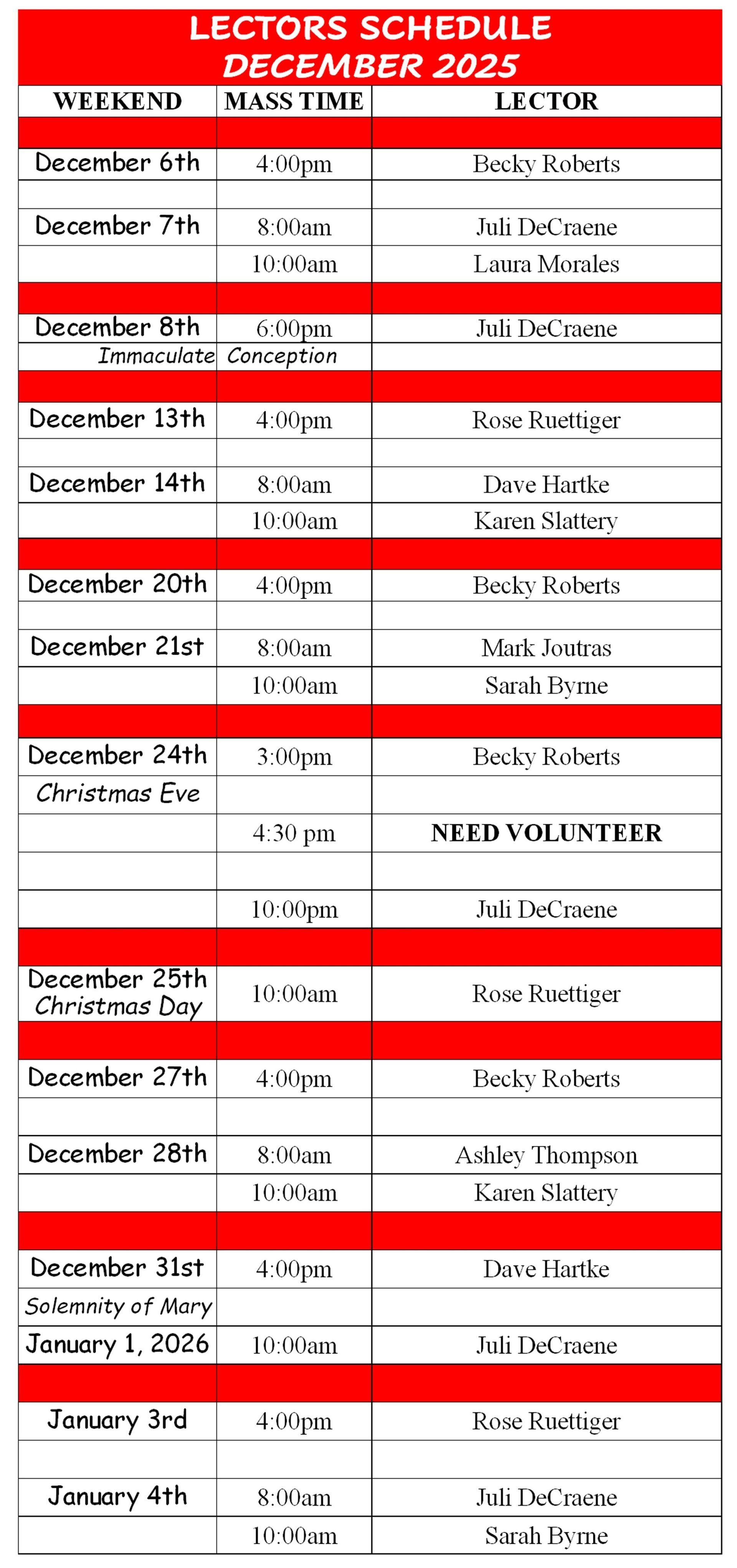 PLEASE REMEMBER THAT YOU ARE RESPONSIBLE FOR FINDING A REPLACEMENT IF YOU ARE UNABLE TO SERVE WHEN SCHEDULED.