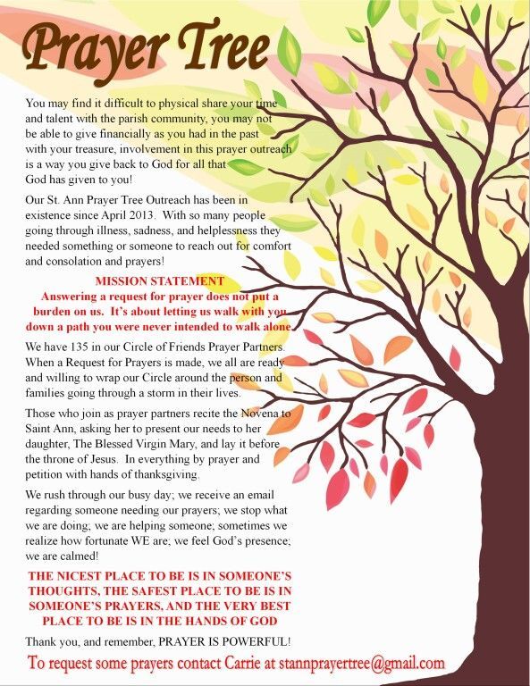 We have heard from many families, placed on the St. Ann Prayer Tree, that they truly feel the prayers helped their Loved Ones and their Families, in time of need…AND how much comfort there is in knowing there are so many praying for them. Our Prayer Tree Circle of Friends are discovering how much power intercessor prayer has before God.